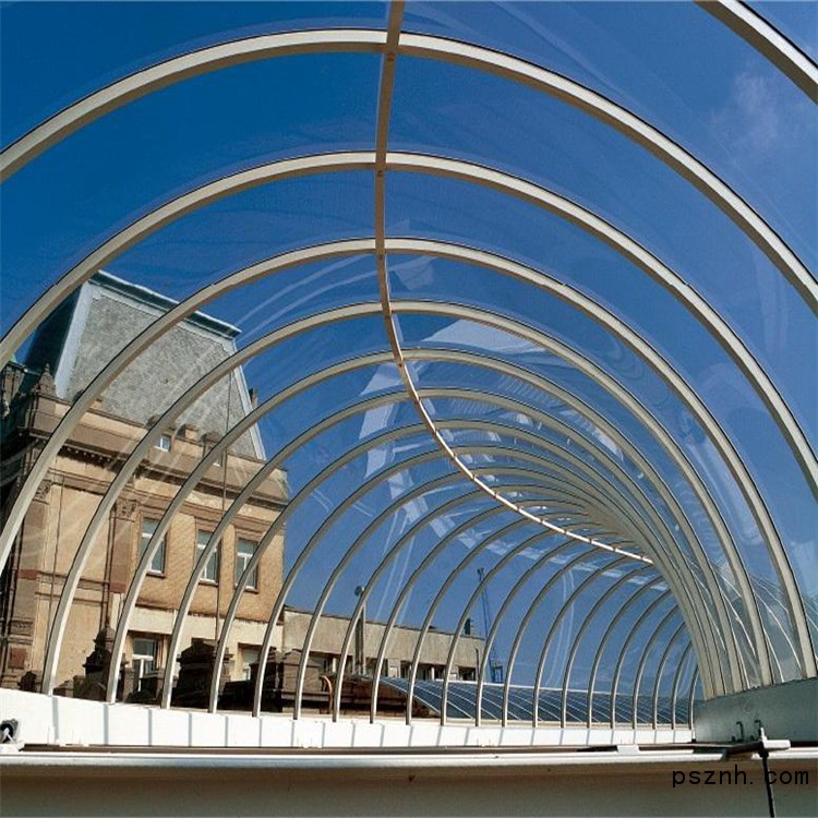透光性:P C板透光率可达89%,可与玻璃相媲美。UV涂层板在太阳光下爆晒不会产生黄变,雾化,透光不佳,十年后透光流失仅为6%,PVC流失率则高达15%—20%,玻璃纤维为12%-20%。